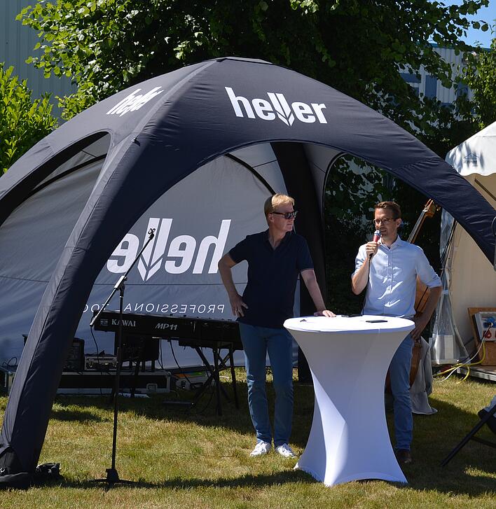 Am Samstag, 29. Juni 2019, hat die Heller Tools GmbH mit einem Familientag ihr 170-jähriges Bestehen gefeiert. Zu diesem Jubiläum hat die Geschäftsleitung alle Heller Mitarbeiter und deren Familien eingeladen, um in gelöster Atmosphäre auf den ältesten Bohrerhersteller der Welt anzustoßen. Bei strahlendem Sonnenschein kamen etwa 200 Gäste auf dem Heller Firmengelände zusammen, das im Stile eines Jahrmarkts gestaltet wurde. Neben einem breit gefächerten Spieleangebot für die Kinder inklusive Hüpfburg, Torwandschießen, Dosenwerfen und „Hau den Lukas“, durften sich die Besucher über ein reichhaltiges gastronomisches Angebot und Livemusik freuen. Die beiden Heller Geschäftsführer Dr. Robert Untiedt und Jörg Frommeyer nutzten Ihre Festtagsrede, um einige lobende Worte für ihre Belegschaft auszusprechen. „Ein ganz besonderer Dank gilt heute unseren Mitarbeiterinnen und Mitarbeitern. Sie alle tragen mit ihrem besonderen Fachwissen und Einsatz dazu bei, dass der Name Heller für Premium-Werkzeuge steht und weltweit nachgefragt wird.“, hob Jörg Frommeyer hervor.